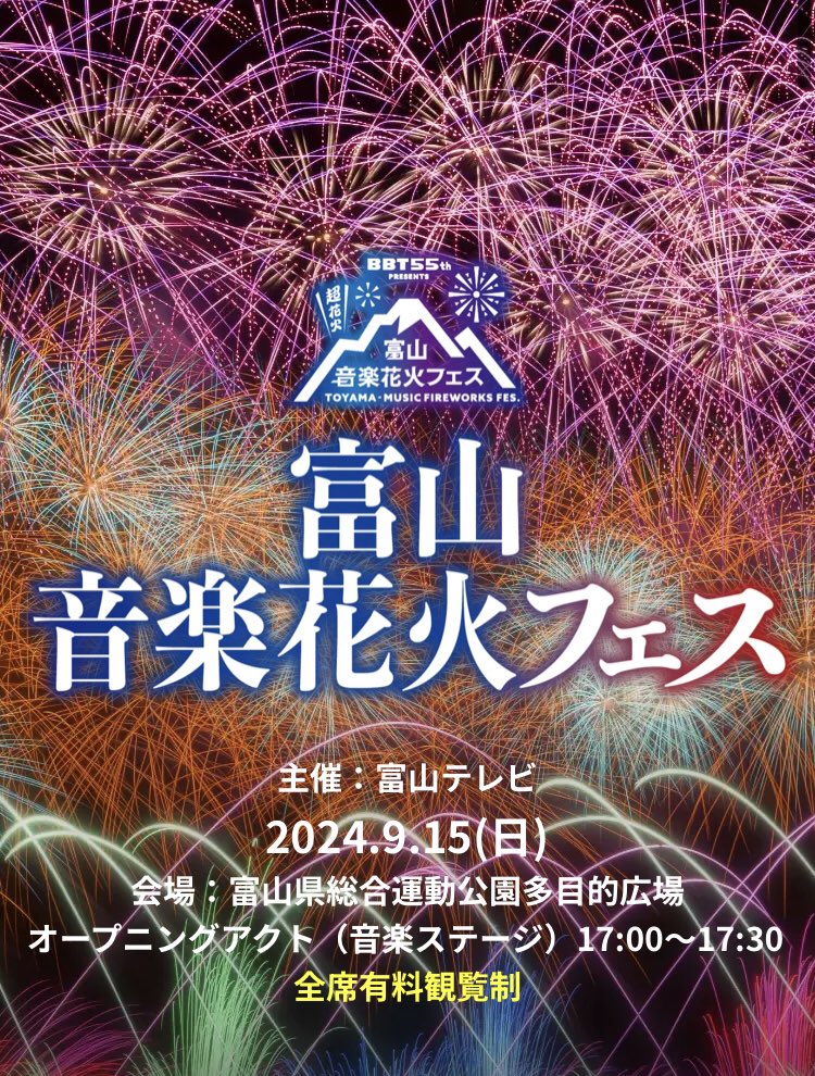 @toyama_fes_bbt【お知らせ📢】 富山音楽花火フェス開幕です🎆 #花火 #音楽花火 #TUBE pic.x.com/7l98fnpdts