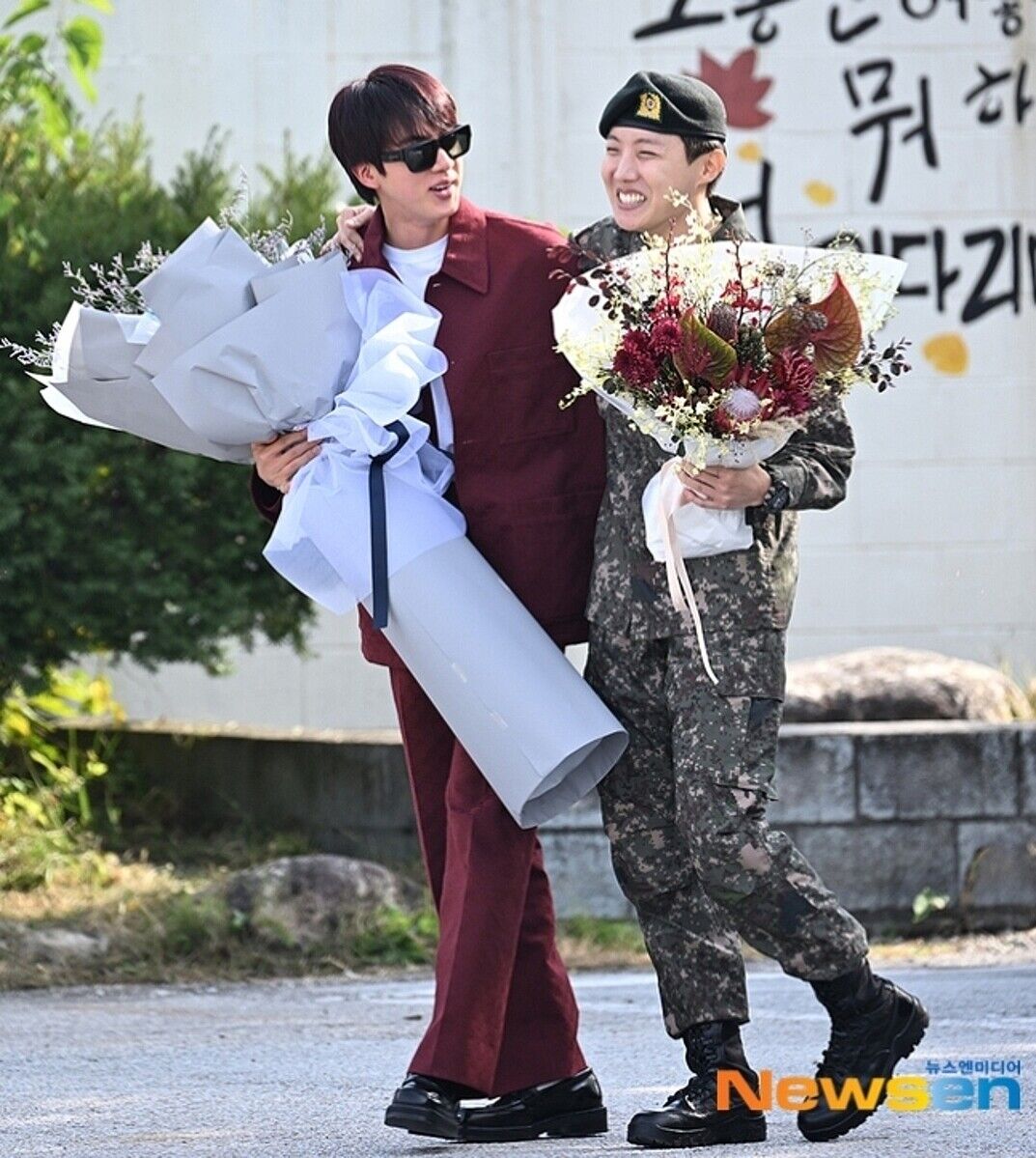@SUGAofBTS0309ホビお帰りなさい💜 それにしてもソクジン…愛さずにはいられないキャラ🤣 BTSのJーHopeさん除隊、JINさんやファンが出迎え(ロイター) #Yahooニュース news.yahoo.co.jp/articles/e15c3…
